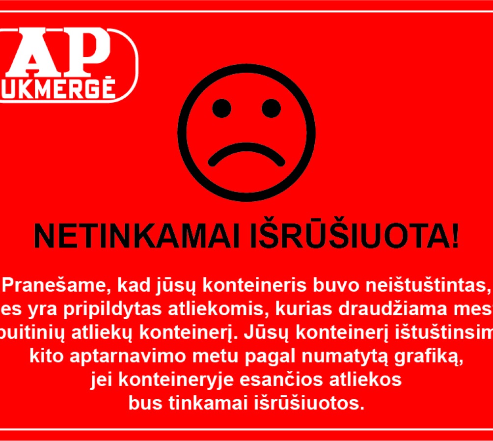 Siekiant spręsti šią problemą bei sumažinti išlaidas, Ukmergės rajono savivaldybės administracija primena, kad žaliąsias atliekas (išskyrus maisto oranžiniuose maišeliuose) draudžiama mesti į mišrių komunalinių atliekų konteinerius ar palikti šalia jų. Artimiausiu metu Savivaldybės administracijos Viešosios tvarkos ir aplinkosaugos skyriaus bei atliekų surinkimo paslaugą teikiančios įmonės darbuotojai planuoja sustiprinti kontrolę ir vykdyti atliekų surinkimo konteinerių patikras.